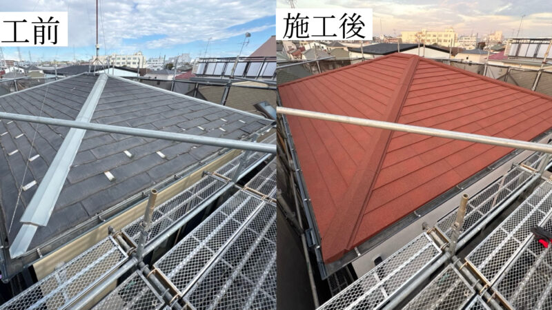 新着工事実績「工事日記」 東京都 大田区 屋根葺き替え工事 石吹き金属屋根材「エコグラーニ(テラコッタ」 2025年11月13日 横浜市 港南区 屋根葺き替え工事 稲垣商事 ヒランビー 2025年10月21日 東京都 町田市 外壁塗装工事 屋根葺き替え工事 スーパーガルテクト 2025年9月3日 工事実績をもっと見る カバー工法(重ね葺き) カバー工法とは、既存の屋根材の上に新しい屋根を重ねる施工方法です。 その為、廃材費用が安く短期間で施工を終わらせることができます。 詳しくはこちら 葺き替え 葺き替えとは、既存屋根材を撤去して新しい屋根材に替える施工方法です。 軽量な屋根材に葺き替える事で耐震性も大幅に上がります。 詳しくはこちら 雨樋交換 雨樋を交換することによって、建物の耐久性を上げたり、雨漏りのリスクを低下させることができます。 詳しくはこちら 外壁塗装工事 外壁塗装工事とは、家の外側の壁に塗料を塗り、見た目をきれいに整えるとともに、雨や風、紫外線から壁を守るための大切な工事です。 詳しくはこちら 屋根材 スーパーガルテクト 「ガルバリウム鋼板」 スカイメタルルーフ 「ジンカリウム鋼板 石葺き」 シングル 「アスファルトシングル屋根材」 稲垣商事スタンビー「縦葺き」 ヒランビー220 「ガルバリウム鋼板」 防水シート タジマ Pカラー タジマ PカラーEX+ タジマ タディスセルフ「粘着タイプ」 タジマ タディスクール タジマ マスタールーフィング「高級」 初めての方へ 支持される理由 清常総建がお客様に選ばれる5つの理由について。 サービスのご案内 サービス内容・施工料金・オプションについて記載しております。 よくあるご質問 屋根工事について、お問い合わせ前に一度ご確認ください。 清常総建について 私たちは、「屋根へのこだわり」だけでなく、お客様の気持ちに対する配慮のこだわりもプラスした住宅リフォームでお客様に向き合っていきたいと思っています。 その他の塗装や内装工事も下請け会社に委託することにはなりますが付き合いの長い職人さんたちとお付き合いがあるため、もちろん工事を受けることも可能です。 詳しくはこちら