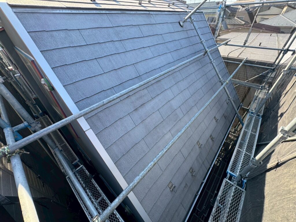 既存スレートの上から、防水の要となるルーフィング(防水シート)を丁寧に施工しました。